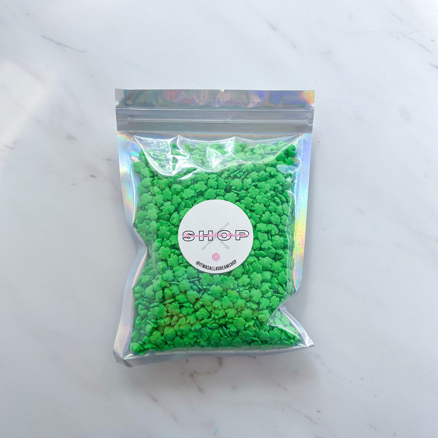 Celebrate St. Patrick's Day with these green shamrock quins. Made in the USA. Kosher. Due to the nature of the product, slight color variations may occur.