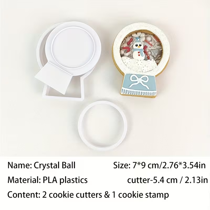 Creative Christmas Day Crystal Ball Cookie Cutter Embossers Mold  Biscuit Stamp Pendant Decoration 3D Plastics DIY Icing Cookie Fondant Cake Shaking Cookie Baking Tools