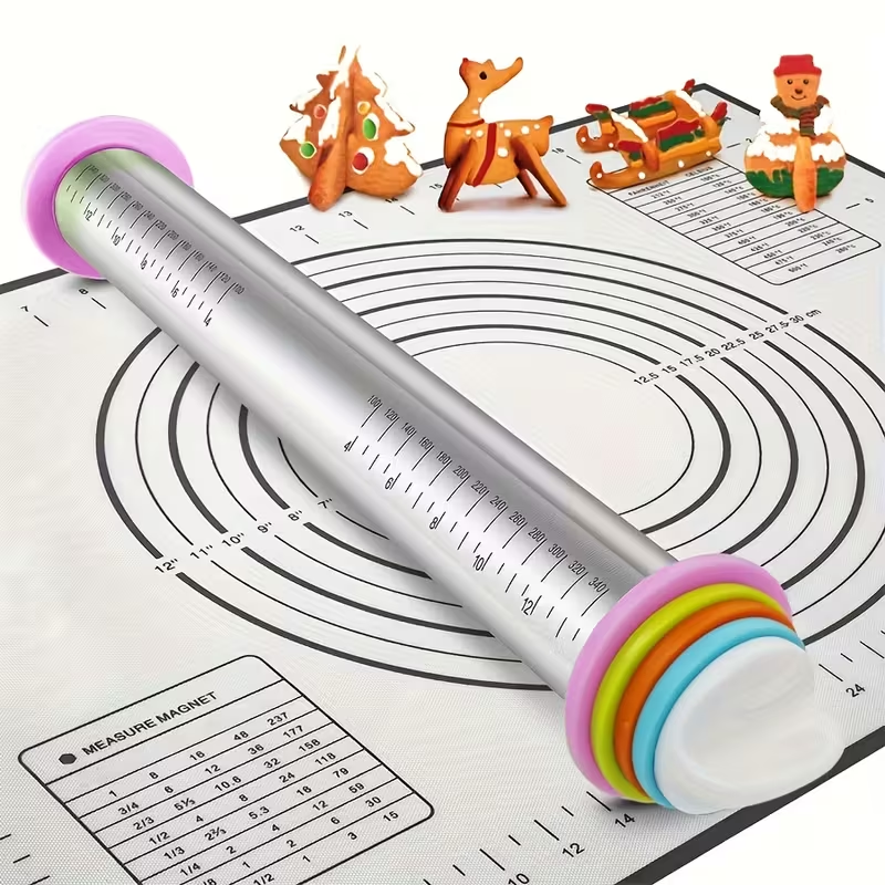 1pc Heavy-Duty Stainless Steel Rolling Pin with Adjustable Thickness Guide & Ergonomic Non-Slip Grip - Multi-Use Dough Roller for Baking, Pizza, Pie, Pastry, Bread, Pasta - Durable 430 Stainless Steel Construction, Precise Thickness Control, Easy-Clean Kitchen Tool for Home & Professional Bakers, Pizza Dough, Bakery Essentials, Sleek Rolling Pin, Pastry Equipment, Home Bakers